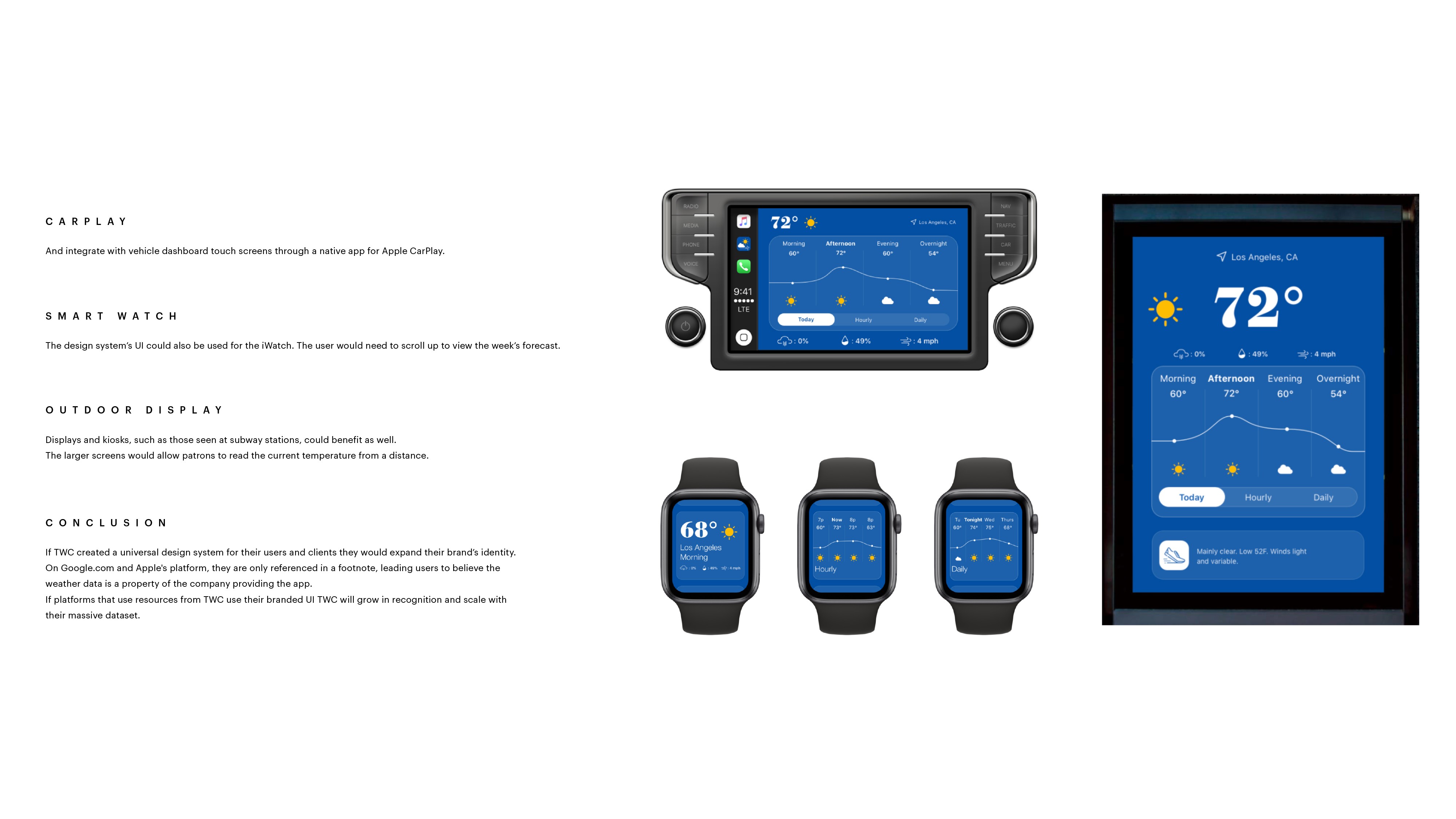 ✨ TWC — Modular Weather App OVERVIEW A conceptual weather product exploring how data, insight, and user needs can be distilled into a calm, minimal interface. The work focused on early product definition, shaping foundational user journeys and experience frameworks to inform future design direction. THE APPROACH Through UX exploration, information architecture, and interaction thinking, the project examined how complexity could be translated into clarity. The design language prioritized focus, readability, and emotional calm—creating an experience that feels intuitive, lightweight, and quietly intelligent. THE OUTCOME A foundational experience framework and visual system establishing direction for future product development—demonstrating how thoughtful structure and restraint can transform data-heavy tools into meaningful daily experiences. FOCUS • UX exploration and product definition • Information architecture and system structure • User flows and interaction design • Minimal visual system development